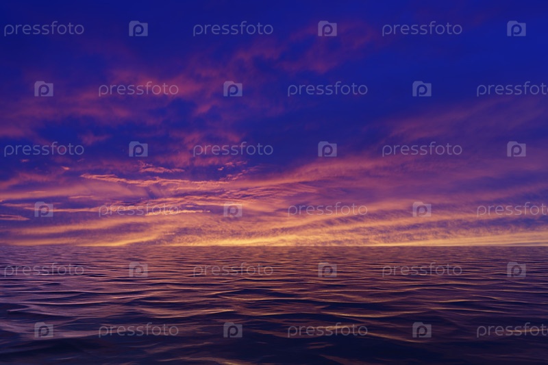 Морской пейзаж с красивым закатом над морем