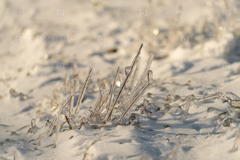 Естественный фон с кристаллами льда на растениях после ледяного дождя