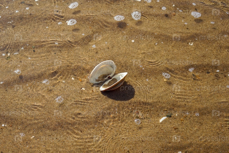 Ракушки на песке. Фон летних каникул на море