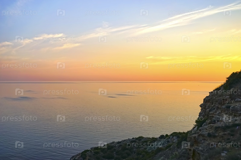 Удивительный закат над морем и береговой линией