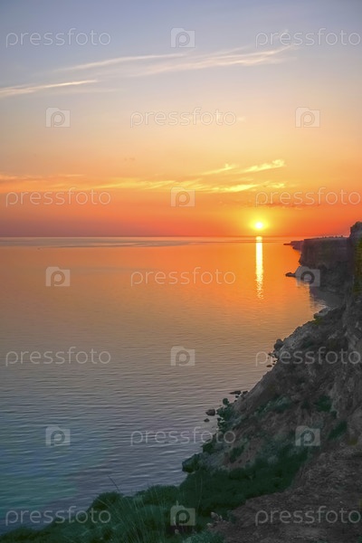 Удивительный закат над морем и береговой линией