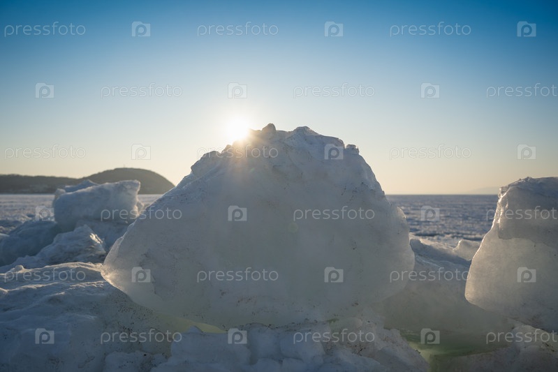 Ледяные глыбы на фоне замерзшего моря