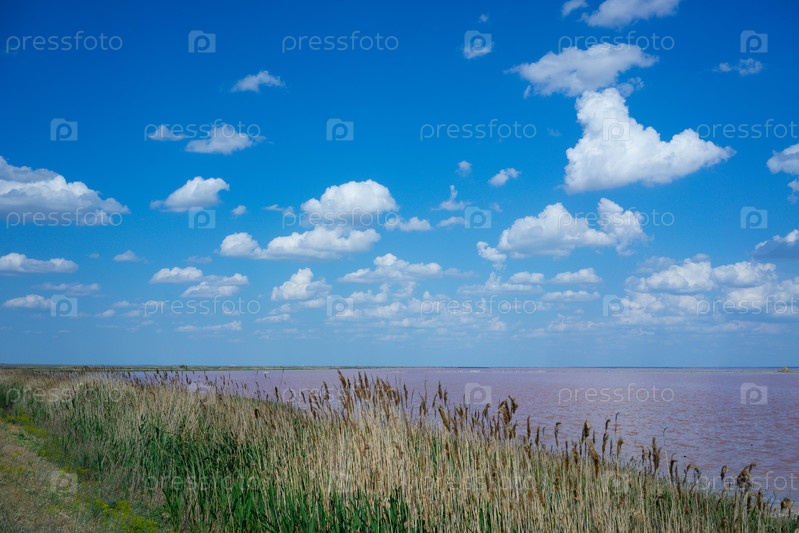 Природный ландшафт с розовым соленым озером