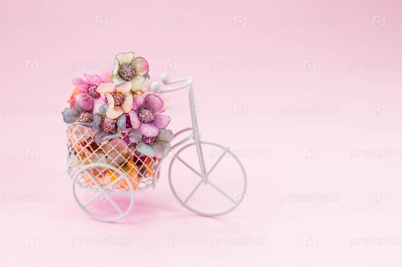 Международный женский день. Баннер, флаер, красивая открытка на 8 марта. Цветы и бабочки в форме цифры восемь на розовом фоне