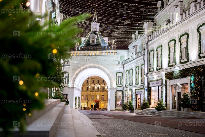 Новогоднее украшение Красной площади. Гирлянды, елочки, огоньки. Красивые праздничные пейзажи в городе Москве. Россия
