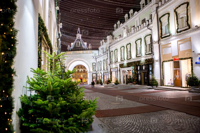 Новогоднее украшение Красной площади. Гирлянды, елочки, огоньки. Красивые праздничные пейзажи в городе Москве. Россия