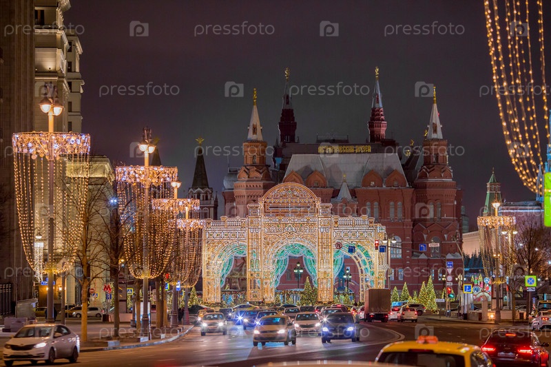 Новогоднее украшение Красной площади. Гирлянды, елочки, огоньки. Красивые праздничные пейзажи в городе Москве. Россия