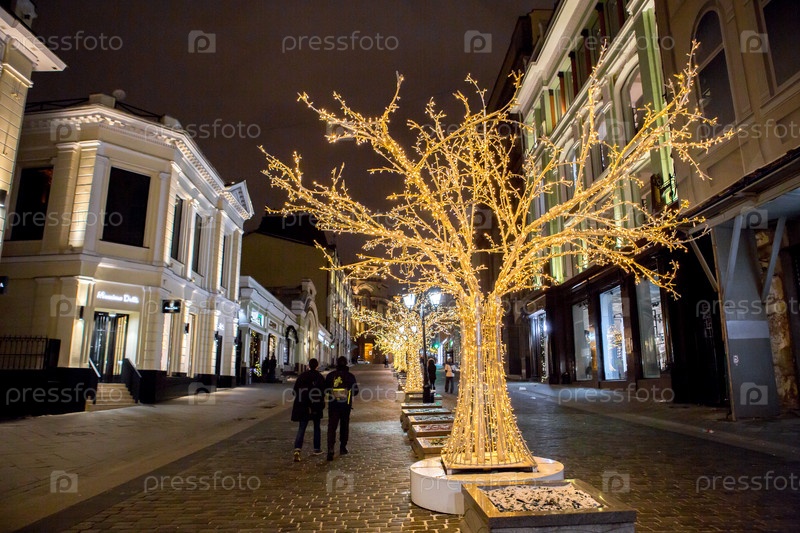 Новогоднее украшение Красной площади. Гирлянды, елочки, огоньки. Красивые праздничные пейзажи в городе Москве. Россия