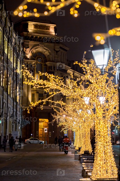 Новогоднее украшение Красной площади. Гирлянды, елочки, огоньки. Красивые праздничные пейзажи в городе Москве. Россия