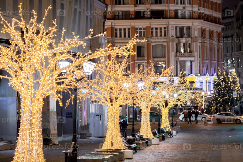 Новогоднее украшение Красной площади. Гирлянды, елочки, огоньки. Красивые праздничные пейзажи в городе Москве. Россия