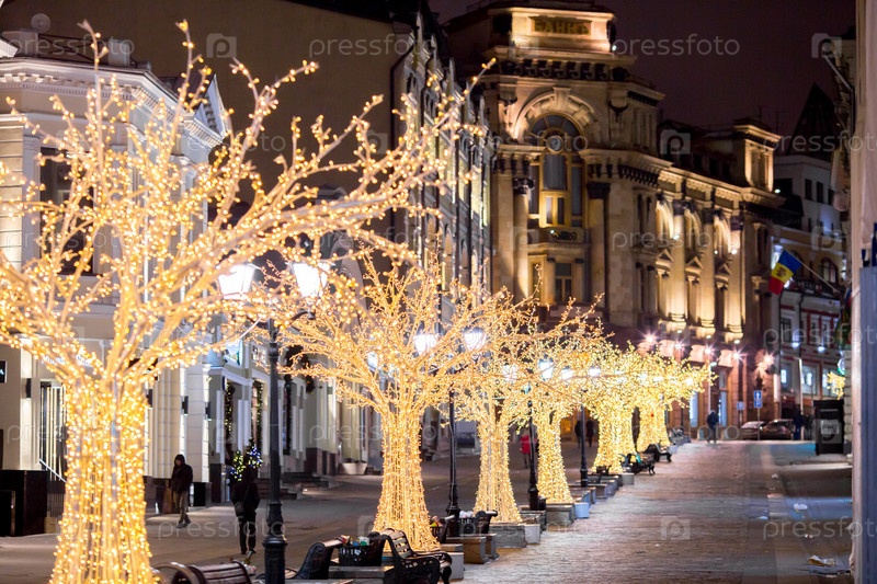 Новогоднее украшение Красной площади. Гирлянды, елочки, огоньки. Красивые праздничные пейзажи в городе Москве. Россия