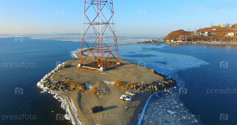 Вид с воздуха на морской пейзаж побережья Владивостока