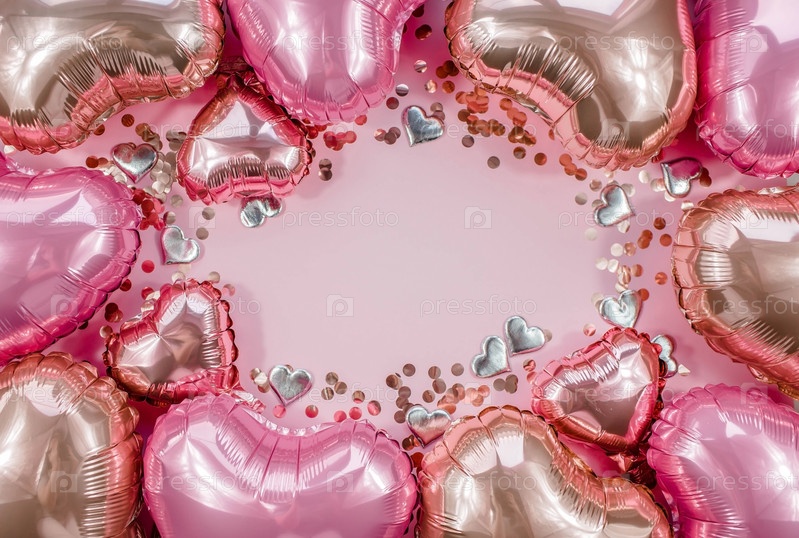 Баннер. Воздушный шар из фольги красного сердца на белом фоне Дня святого Валентина. Копипространство