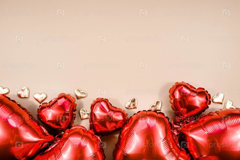 Баннер. Воздушный шар из фольги красного сердца на белом фоне Дня святого Валентина. Копипространство