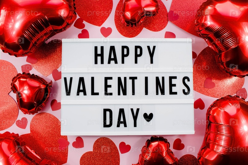 Баннер. Воздушный шар из фольги красного сердца на белом фоне Дня святого Валентина. Копипространство