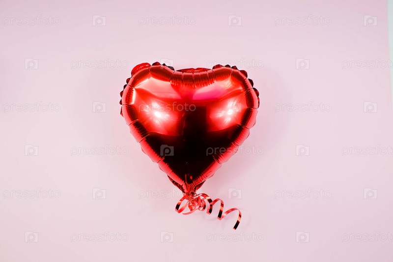 Баннер. Воздушный шар из фольги красного сердца на белом фоне Дня святого Валентина. Копипространство