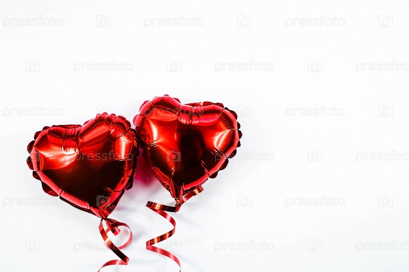 Баннер. Воздушный шар из фольги красного сердца на белом фоне Дня святого Валентина. Копипространство