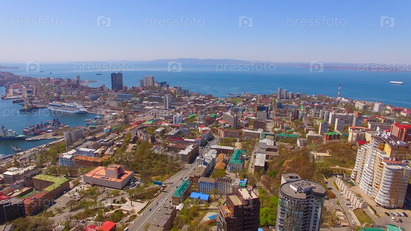 Вид с воздуха на городской пейзаж Владивостока