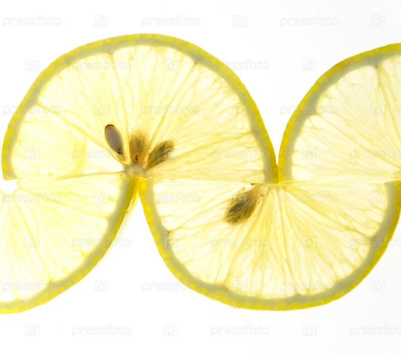 Тонкие ломтики лимона сложены узором на белом фоне