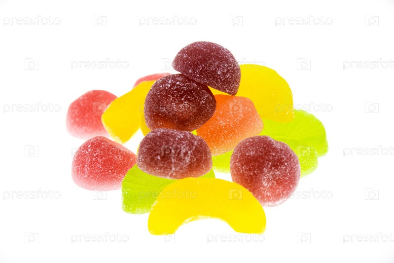 Разноцветный фруктовый мармелад на белом фоне