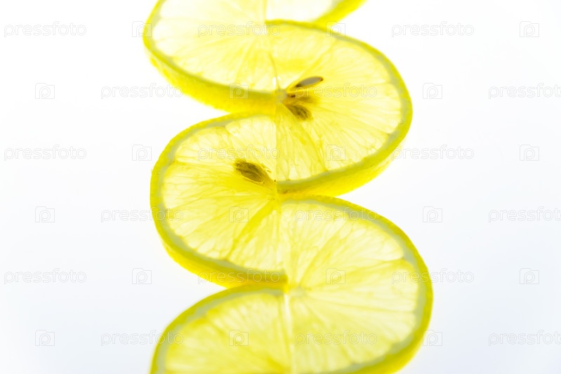 Тонкие ломтики лимона сложены узором на белом фоне