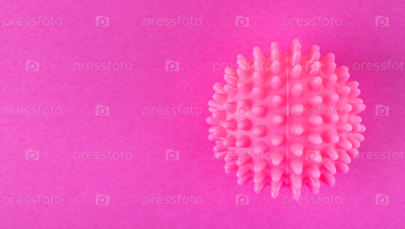 Розовый шар для стирки стиральной машины на красочном розовом фоне. Копировать пространство
