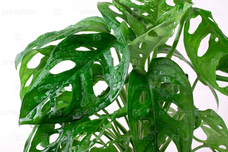 Листья комнатного растения Monstera Monkey Mask с каплями воды