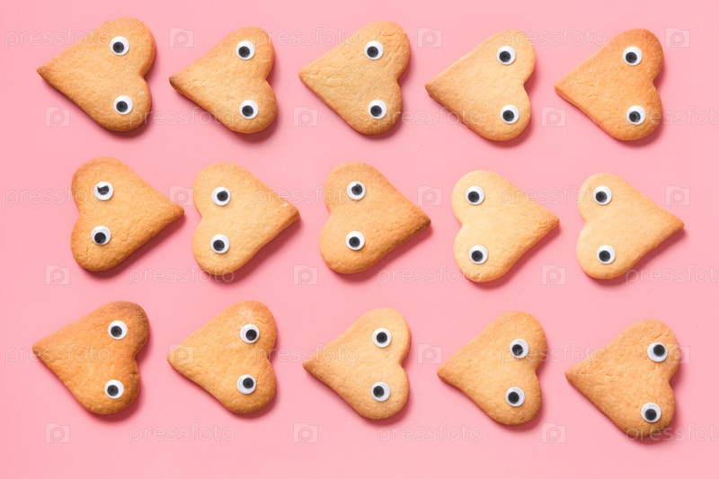 Граница домашнего печенья в форме сердца на розовом. Плоская укладка