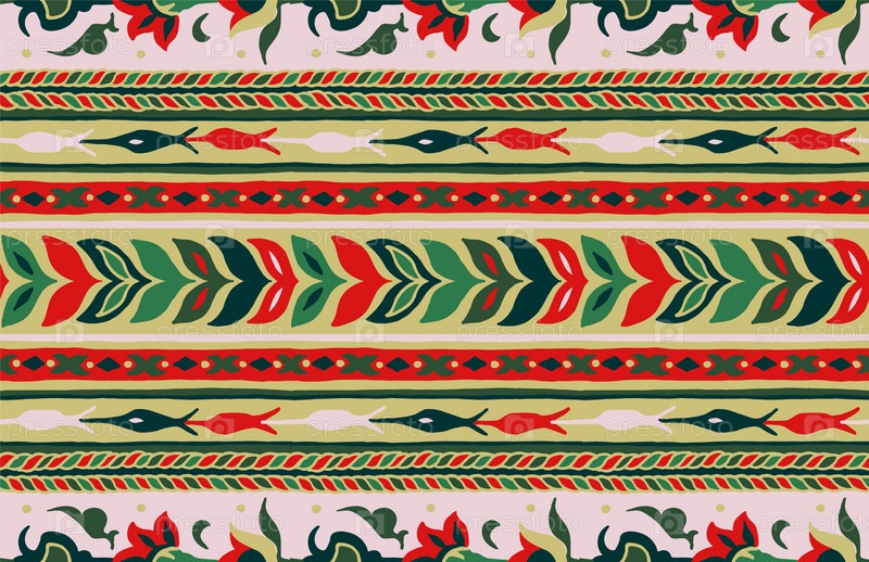 Геометрический фольклорный орнамент икат. Племенная этническая векторная текстура. Бесшовный полосатый узор в стиле ацтеков. Рисунок племенной вышивки. Индийский, скандинавский, цыганский, мексиканский, народный узор