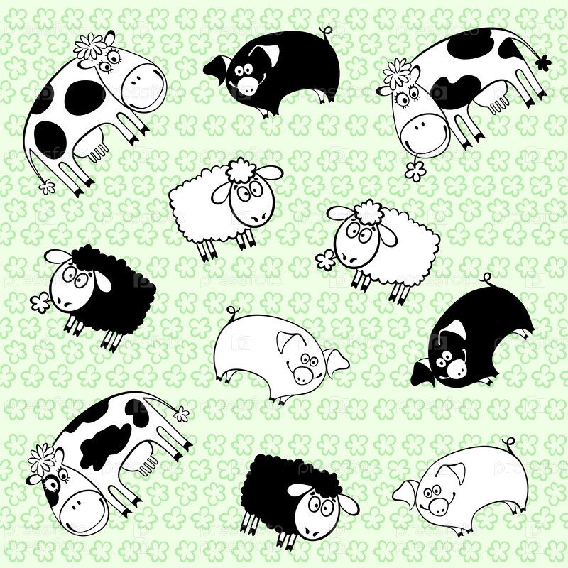 Бесшовный рисунок с сельскохозяйственными животными