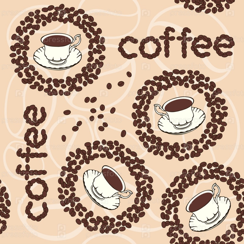 Векторный фон с кофейными зернами и чашками