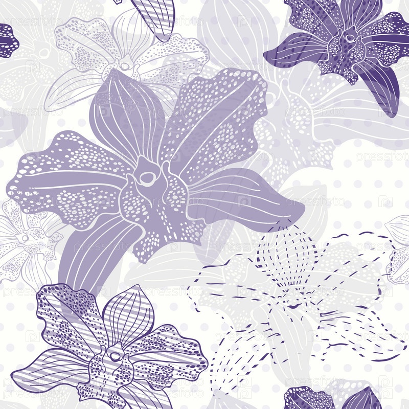 Цветочный бесшовный узор с нарисованными вручную орхидеями. Векторный дизайн