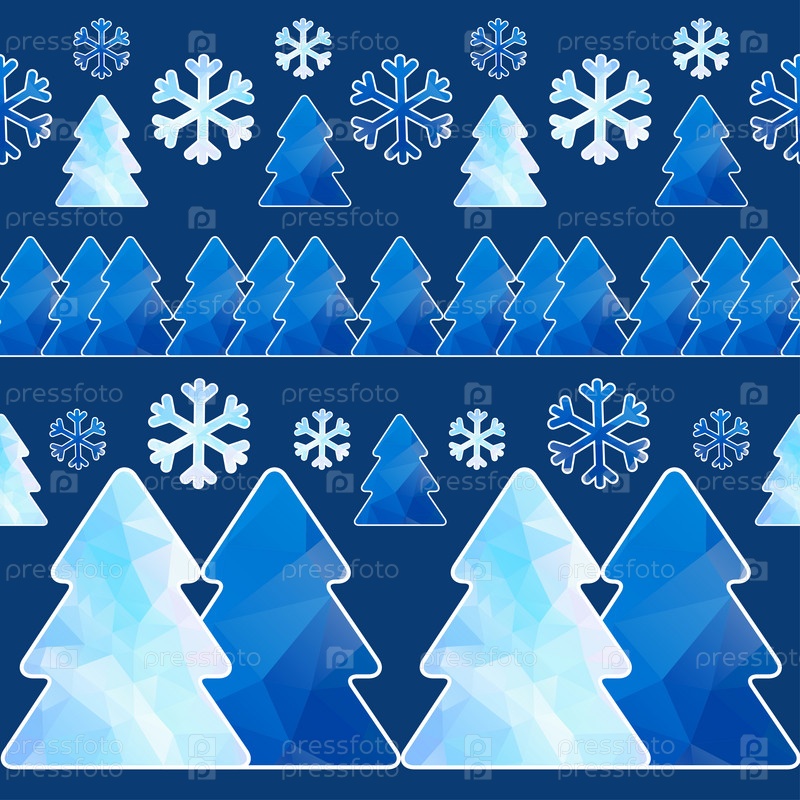Бесшовный узор с абстрактными елями и снежинками геометрических фигур