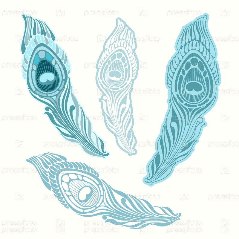 Стилизованное перо павлина. Векторный набор