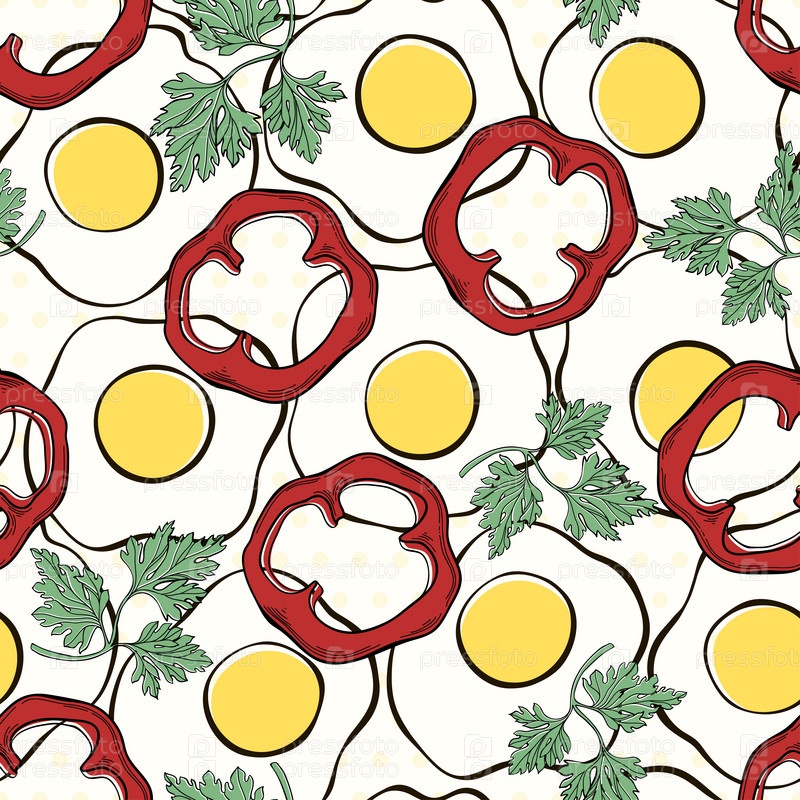 Яичница с паприкой и петрушкой. Бесшовный узор