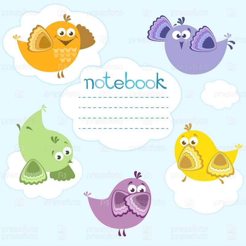Обложка ноутбука с птицами на синем фоне и место для текста. Векторная иллюстрация