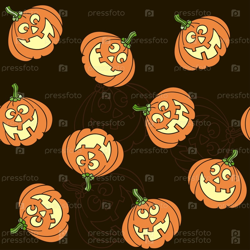 Бесшовный рисунок с мультяшными тыквами на Хэллоуин