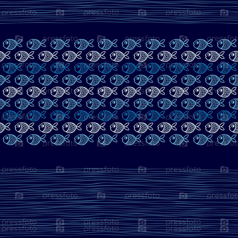 Векторный бесшовный фон из мультяшных забавных рыб и волн