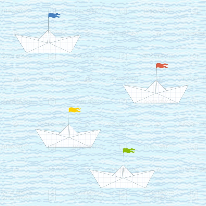 Бесшовный рисунок с волнами и бумажными кораблями