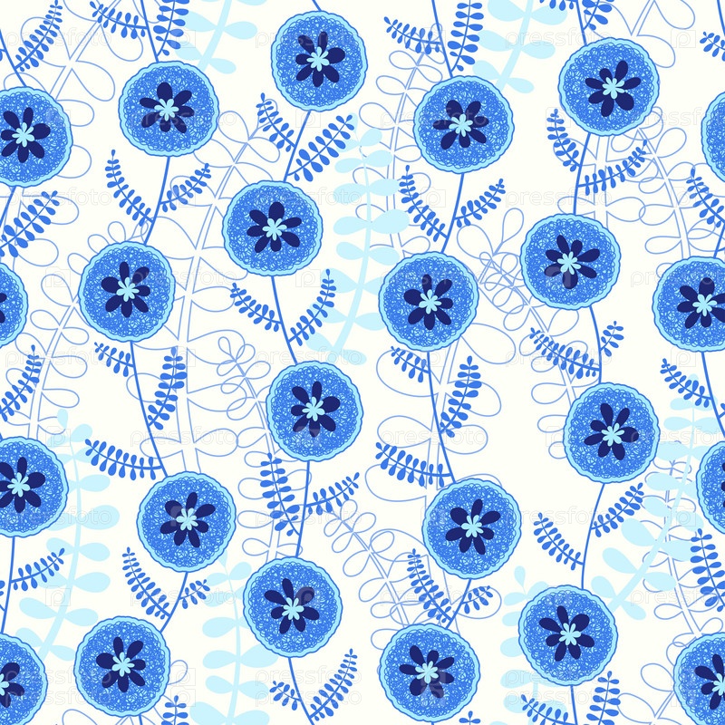 Абстрактный бесшовный рисунок с голубыми цветами