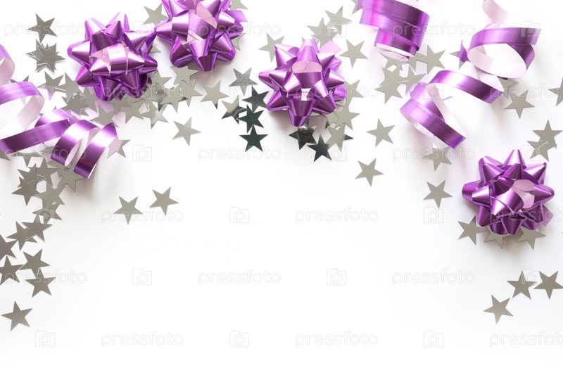 Рождественская граница серебряного и розового пастельного украшения, шары, мишура, звезда, блеск на белом. Рождество. Плоская укладка. Вид сверху с копией пространства