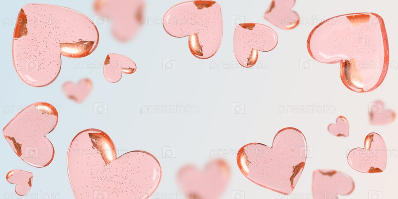 Летающие розовые сладости в форме сердца на синем фоне. Открытка на день Святого Валентина. Баннер