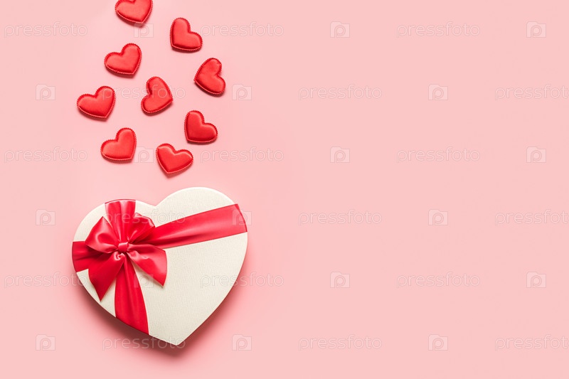 Коробка карточки дня валентинки белая с красными маленькими сердцами
