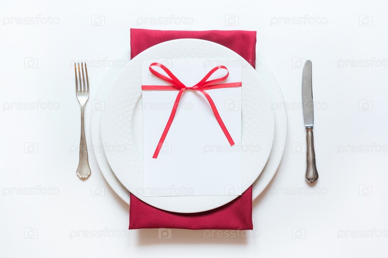 День святого Валентина или ужин на день рождения. Элегантная сервировка стола с красным декором. Вид сверху