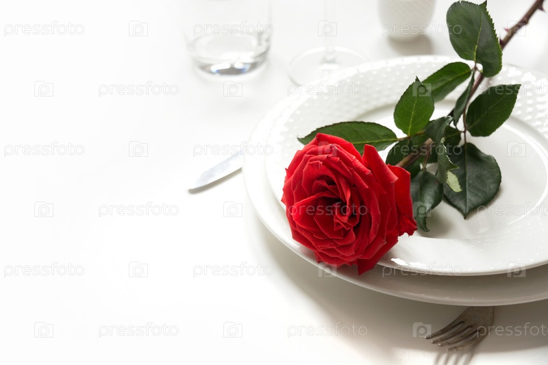 День святого Валентина или день рождения романтический ужин. Романтическая сервировка стола с красной розой