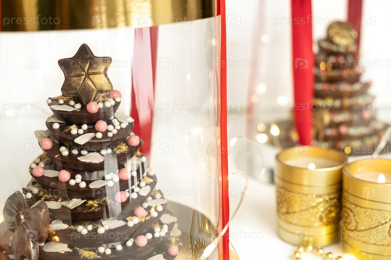 Новогодняя или новогодняя елка из шоколада своими руками в подарочной упаковке. Рождественская концепция еды