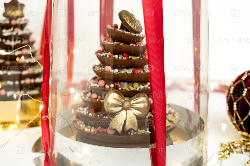 Новогодняя или новогодняя елка из шоколада своими руками в подарочной упаковке. Рождественская концепция еды
