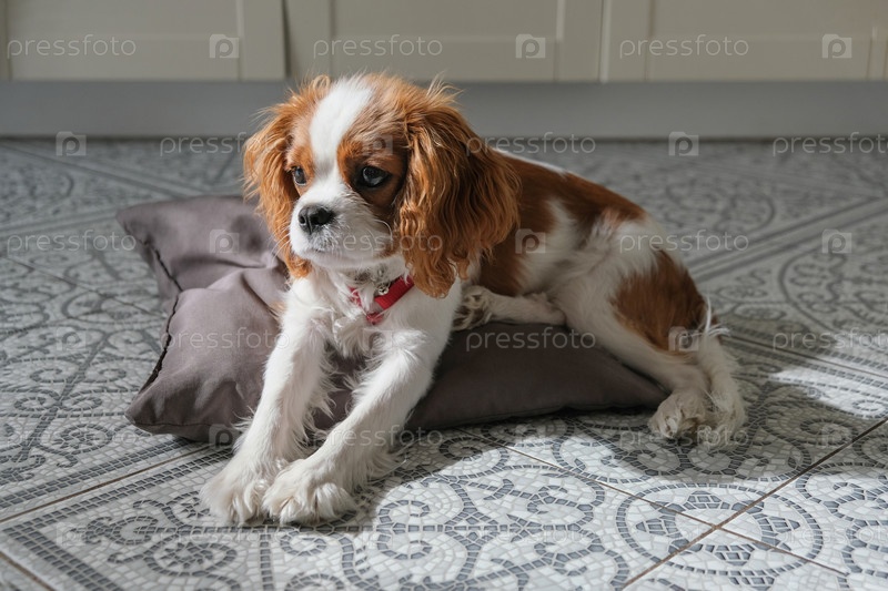 Крупным планом портрет милого щенка. Кавалер-кинг-чарльз-спаниель Бленхейм