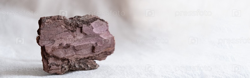 Естественный фон для эко-продуктов. Лен, кора дерева, зеленое и сухое растение, подиум