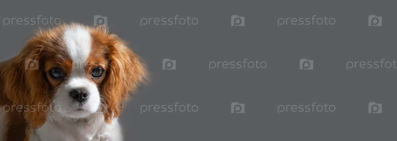 Крупным планом портрет милого щенка. баннер, кавалер-кинг-чарльз-спаниель Бленхейм